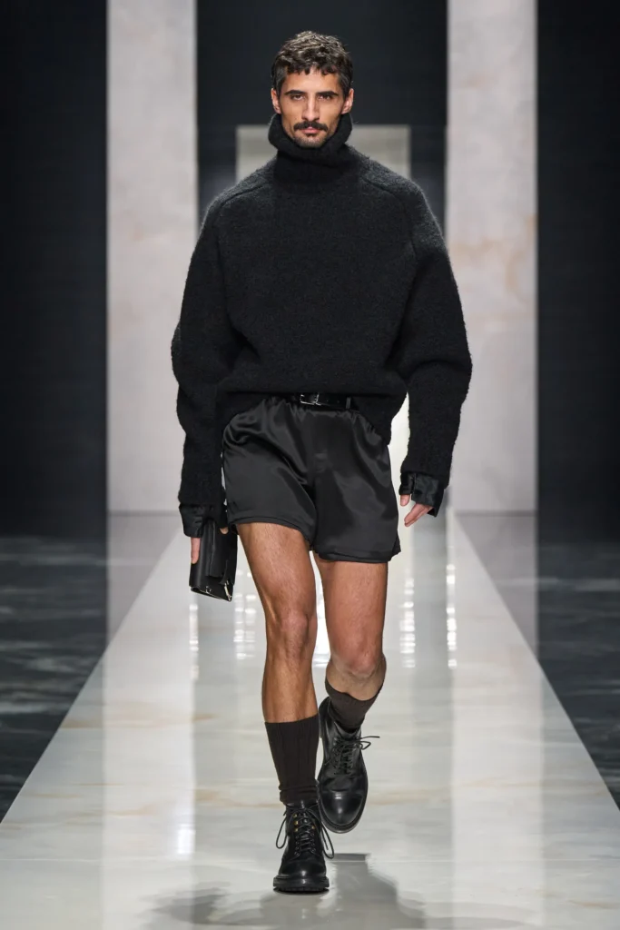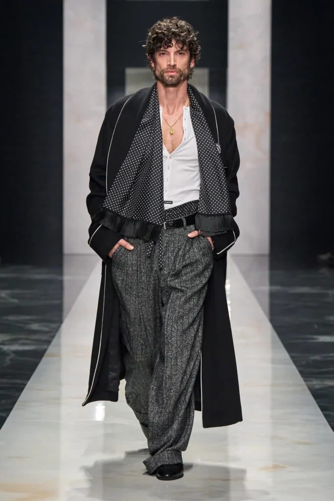 Finalmente, Dsquared cerró con su energía característica: de una explosión estética après-ski que mezcló el denim destruido con pieles de lujo. Siendo ideal para la moda masculina que entiende lo lujoso detrás de lo excéntrico.