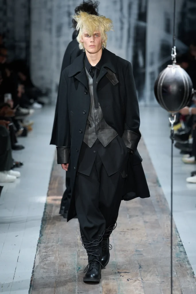 Mientras que, Yohji Yamamoto nos recordó por qué el negro es un color infinito, con capas de lino y lana que se mueven como sombras.