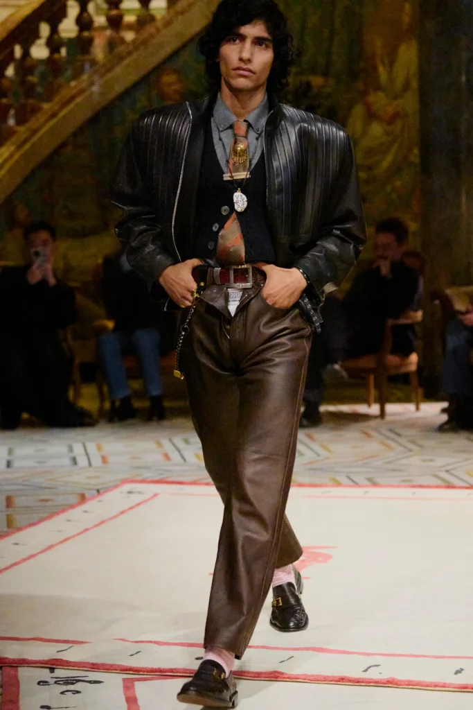 Versace, bajo una nueva dirección más introspectiva pero igualmente poderosa con Dario Vítale, donde entrega una colección en la cual el glamour encuentra un nuevo lenguaje. En lugar de los excesos icónicos de los noventa, la casa apuesta por siluetas que revisan su herencia a través de una estética más cruda, ligeramente desordenada y humana.